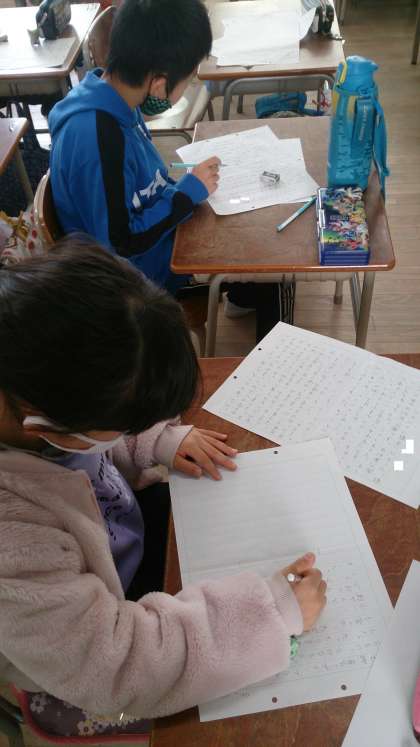 2学期の思い出を作文に書きました。遠足や運動会など楽しかった思い出を作文に書いています。