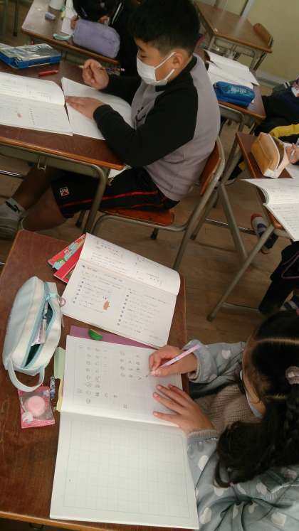 漢字の学習をしました。同音異義語や2年生で習った漢字を復習しています。