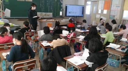 物語文「お手紙」の学習をしています。物語の場面分けを話し合いました。