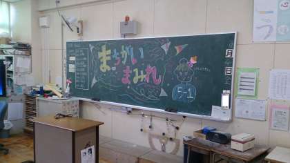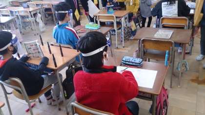 5年生は、人間間違い探しとダンボールつみを出店しました。写真は、人間間違い探しの様子です。