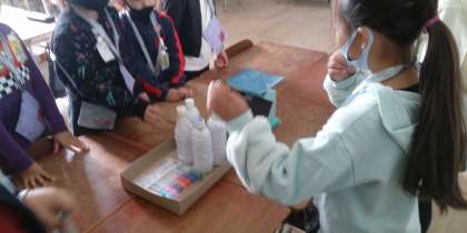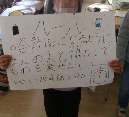 写真は、重さ当てのゲームの様子です。どの学年のルール説明も、とても丁寧でした。