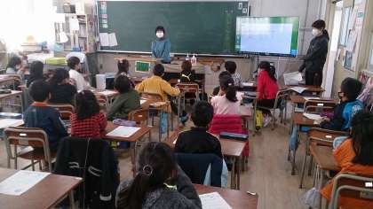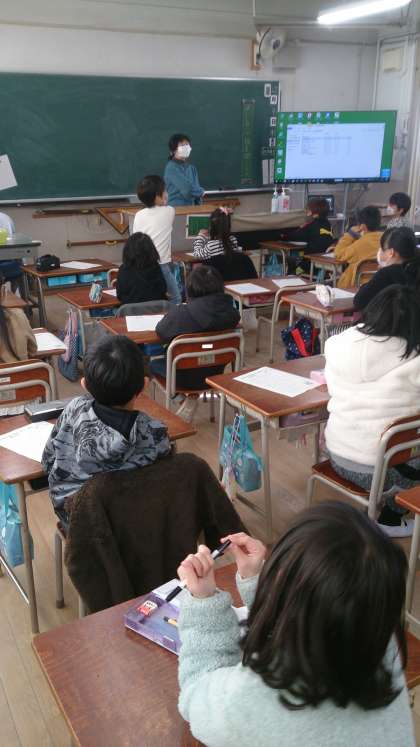 東淀川図書館の出前授業がありました。子どもたちは物語の中にどっぷりと入りこんで、楽しく読み聞かせを聞くことができました。とても素晴らしい読み聞かせでした。