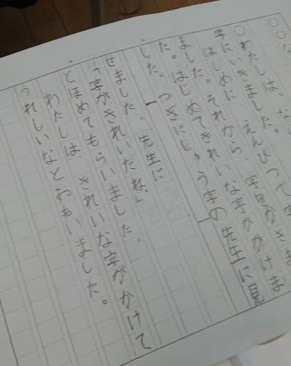原稿用紙を使って作文を書きました。原稿用紙の使い方に気をつけながら書くことができました。