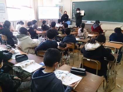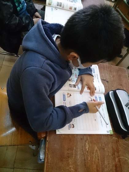 C-NETの授業がありました。高学年の外国語科では、書く学習も増えてきます。