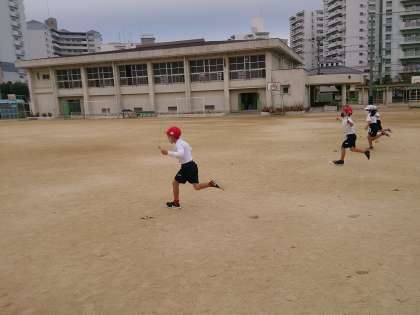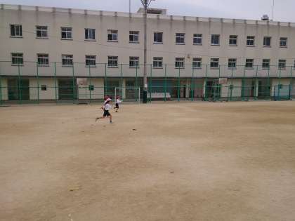縄跳びの運動をしました。リズムよく走り縄跳びをしています。