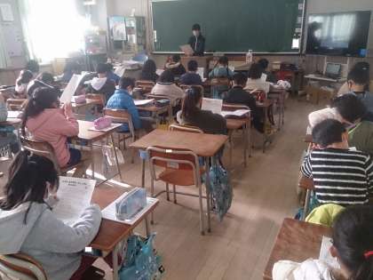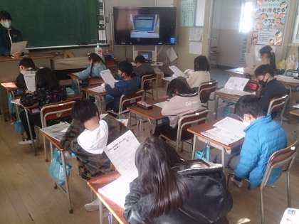 東淀川図書館を紹介するために資料で調べています。出前授業で館長さんが来ていただいてお話されたことや写真も参考にしながら働く人の人数や仕事の内容などについて学んでいます。