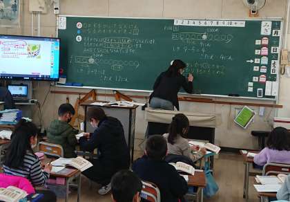 公開授業がありました。「なんばんめ」を図を使って考えました。問題文を読み、どんな式を作ればいいかをみんなで話し合いました。