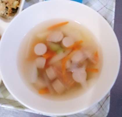 今日の給食は、ほたて貝のグラタン、スープ、和なし、パン、牛乳です。