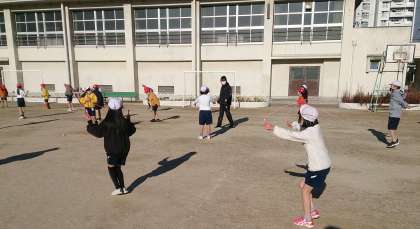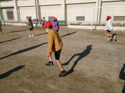 縄跳びで、いろいろな跳び方にチャレンジしています。