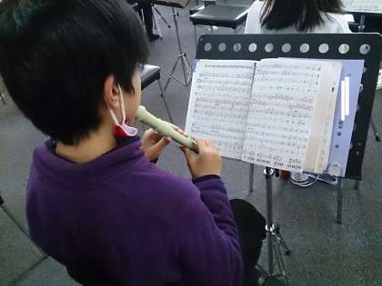 リコーダー演奏をしました。テンポの速い曲を、子どもたちはしっかりとタンギングして演奏できました。