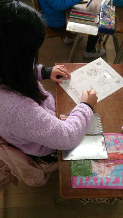 3学期のめあてを考えました。勉強や生活面で頑張りたいこと目標シートに書いています。