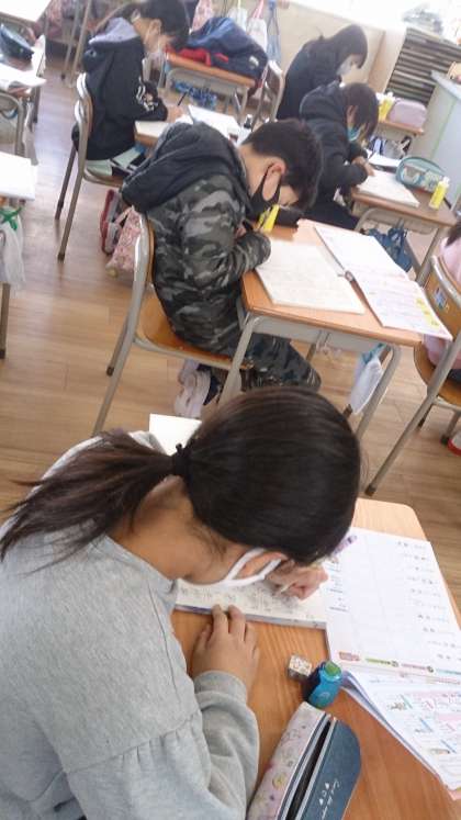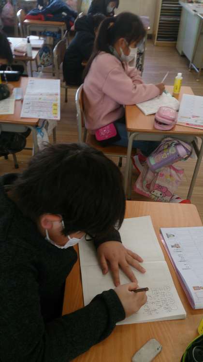 漢字の学習をしました。熟語や短文を丁寧に漢字ノートに書いています。
