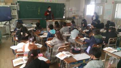 説明文「人をつつむ形—世界の家めぐり」を学習しました。国によっていろいろな家の形の特長を、材料・気候風土などをもとに読み取っています。この時間は、「セネガルの家」を学習しています。