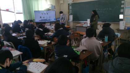 C-NETのライザ先生と外国語科(英語)の学習をしました。職業についてのリスニングをしています。絵や図と英語から、必要な情報を推測しながら聞き取っています。