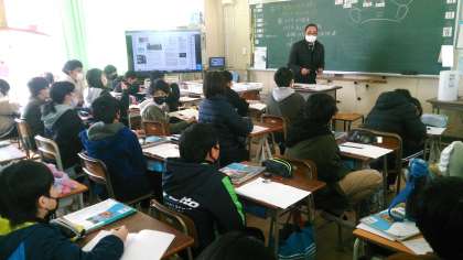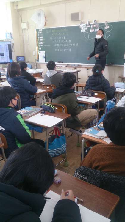 教頭先生の特別授業がありました。第二次世界大戦について調べ考えました。
