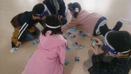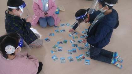 昔からの遊びをしました。グループでカルタを楽しみました。