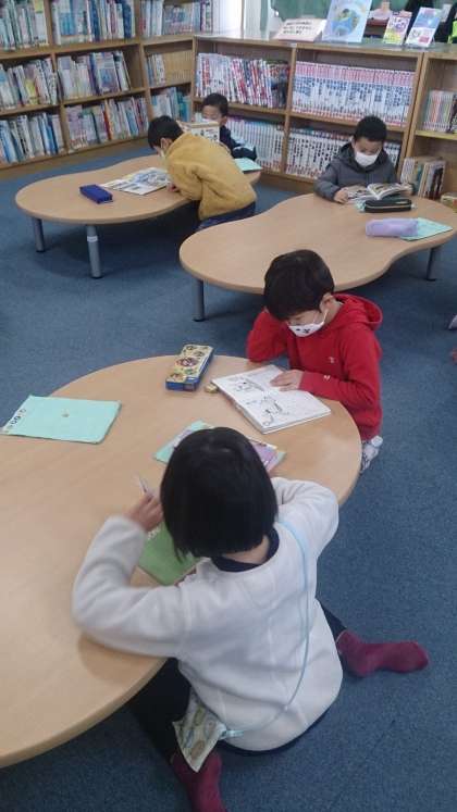 図書の時間に読書活動をしました。熱心に読書している様子や真剣に本を選んでいる子どもたちの姿が印象的でした。
