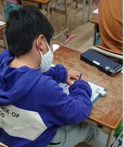 ドリルで漢字を書く練習をしています。集中して取り組んでいました。
