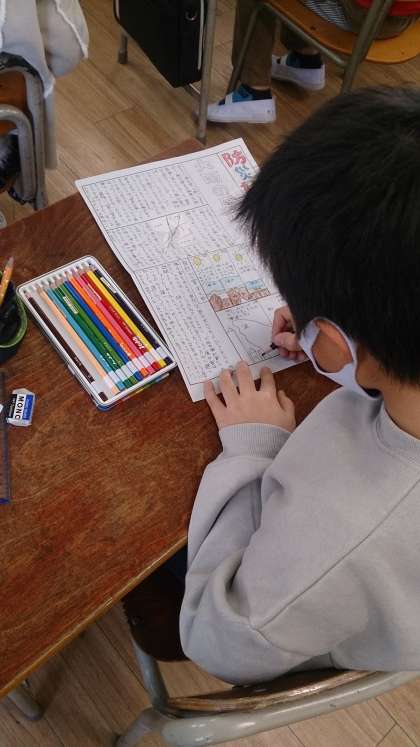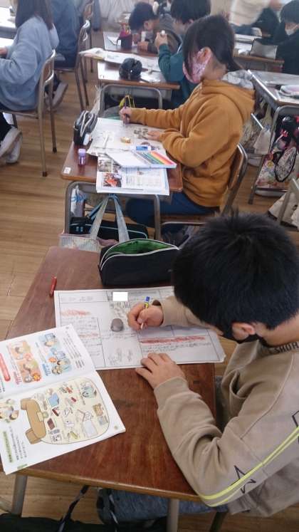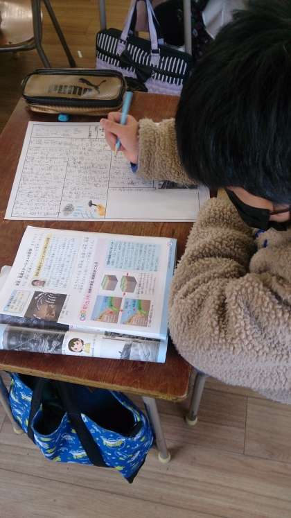 社会科新聞づくりに取り組んでいます。大阪の風水害や津波や地震が起こる仕組みなどを「防災新聞」にまとめています。