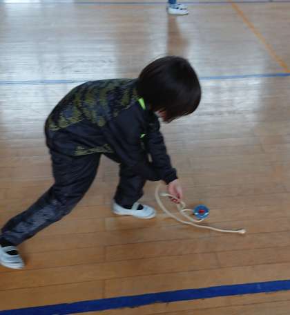 こままわしや羽根つきなどの昔遊びをしました。