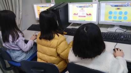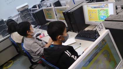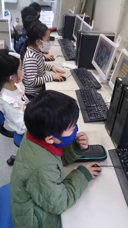 パソコン室で、マウストレーニングのソフトをしました。迷路やクイズなど楽しみながらマウス操作に慣れ親しんでいます。