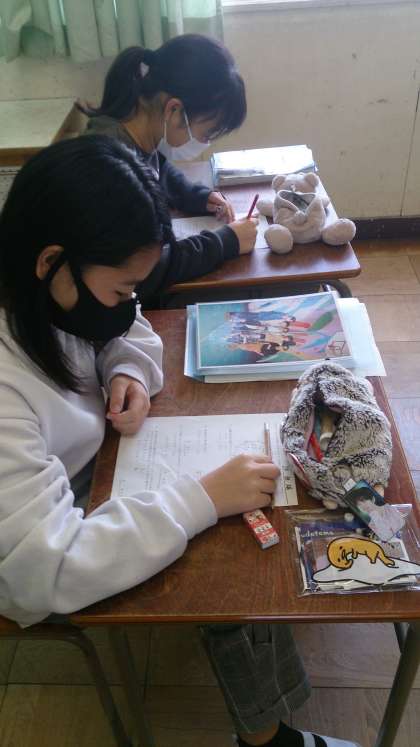 「円グラフ」の学習をしました。表から割合を求めて円グラフに表しています。