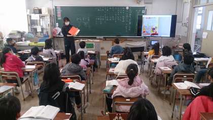 単元「おばあちゃんに聞いたよ」の学習をしました。十二支にまつわる絵本から言い方や意味などを学んでいます。