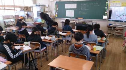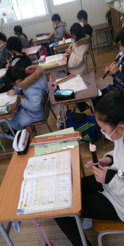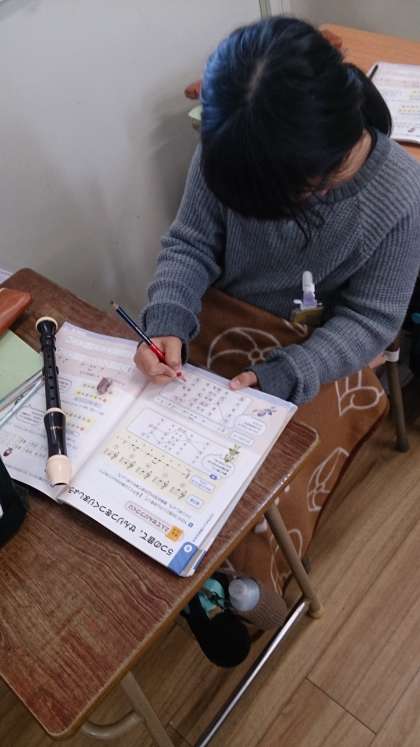 旋律づくり(作曲)をしました。。「ミ」「ソ」「ラ」「ド」「レ」の5つの音と指定されたリズムを使って旋律をつくります。