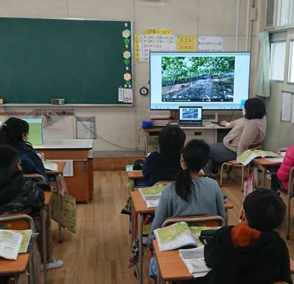 柏原市のぶどうづくりについて、動画や地図などの資料を見ながら学習しました。