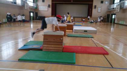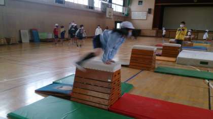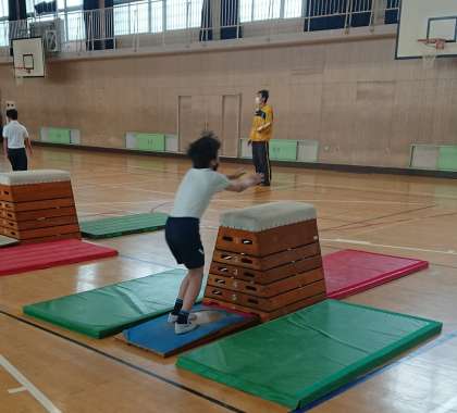 跳び箱運動をしています。