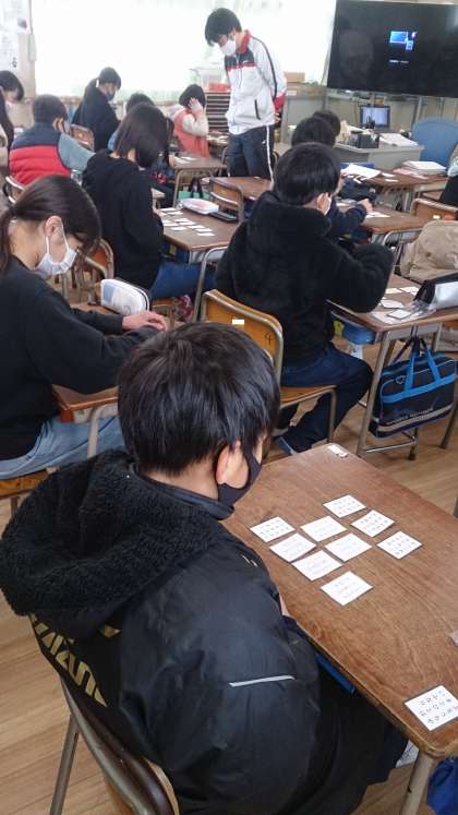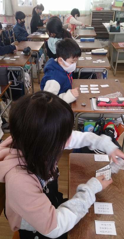 学習指導要領では、「易しい文語調の短歌や俳句について、情景を思い浮かべたり,リズムを感じ取りながら音読や暗唱をしたりすること。」とあります。百人一首で、「短歌」を楽しんで学んでいます。