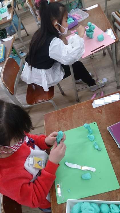 だんだん形が出来上がってきました。子どもたちの想像の世界が広がっています。