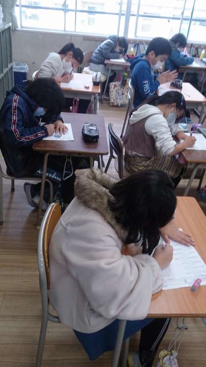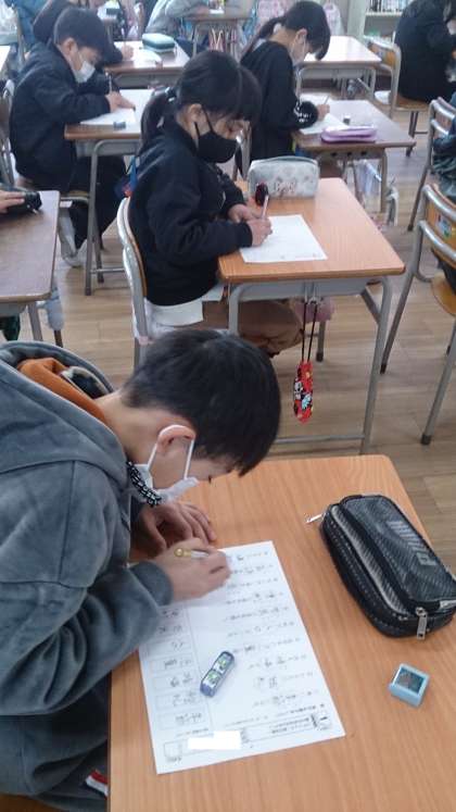 漢字プリントで復習をしました。習った熟語をしっかりと思い出して書いています。