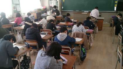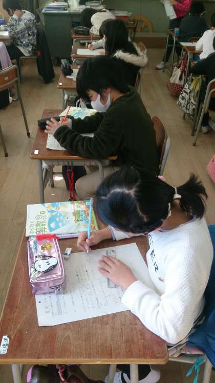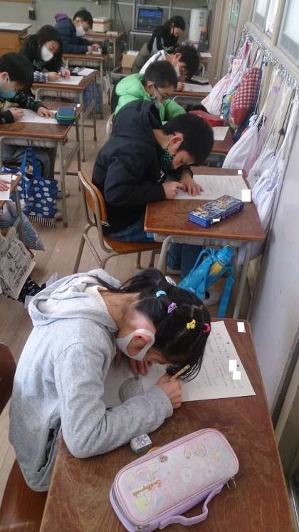学習のまとめとして、テストをしました。小数についての学習を振り返っています。集中して取り組んでいます。