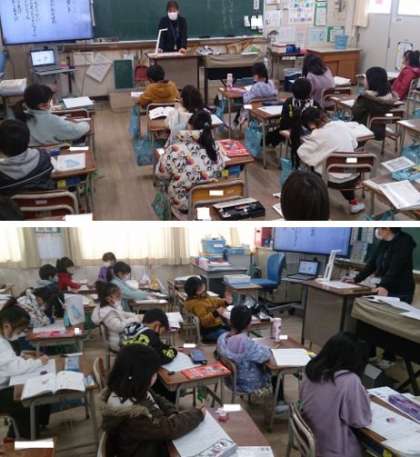 単元「小学校のことをしょうかいしよう」の学習をしました。学校の行事や学習を季節ごとに思い出しました。