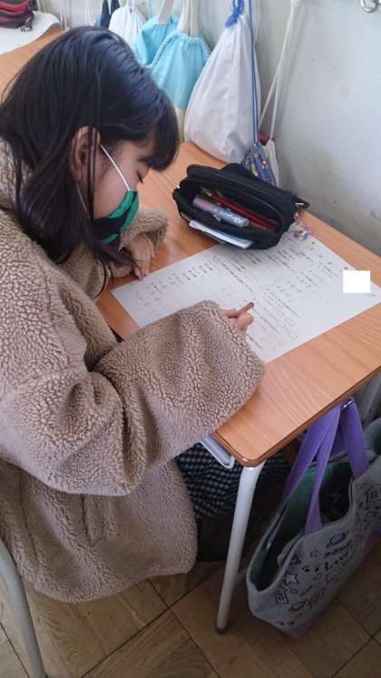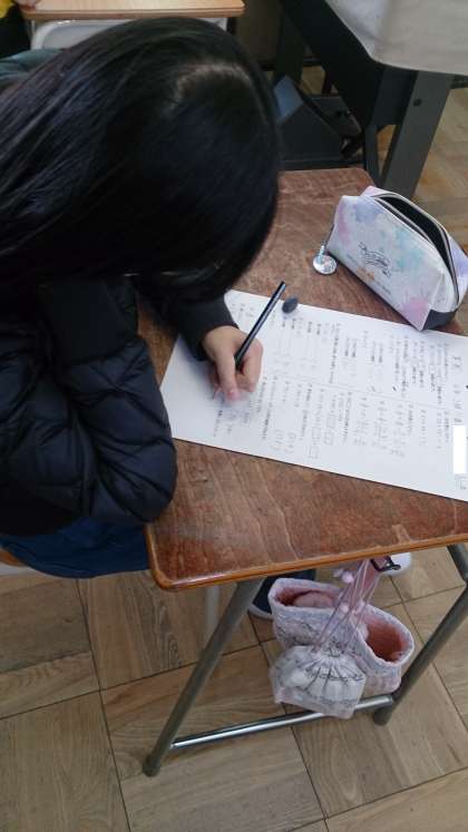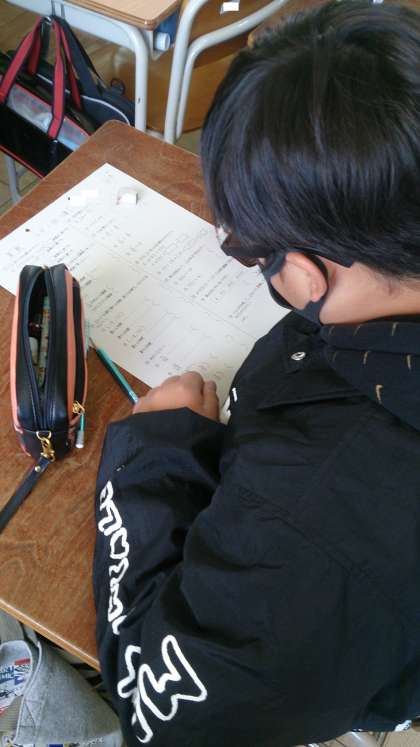 6年生の学習のまとめをしています。これまで習った単元の学習を振り返って、テストに取り組んでいます。