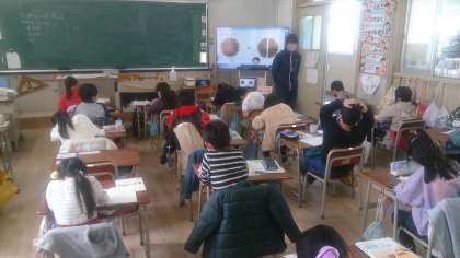 「分数」の学習に取り組んでいます。紙を半分に折って分数の概念を学習しました。