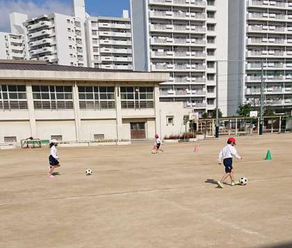 運動場で体を動かしました。みんな楽しそうに活動していました。