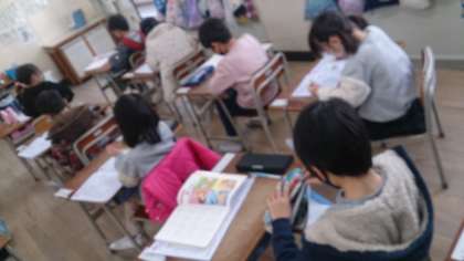 100までのかずのけいさんの復習をしています。ドリルで練習問題に取り組んでいます。