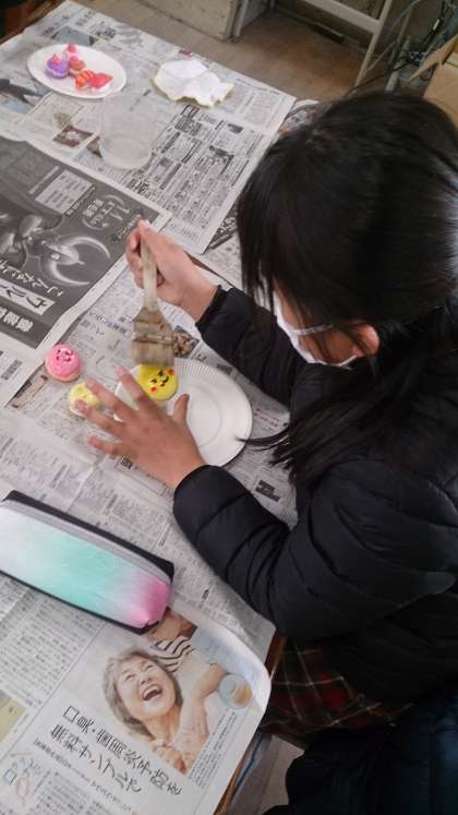 「食品サンプル」の仕上げをしました。作品の完成に向けてニスを丁寧に塗っています。