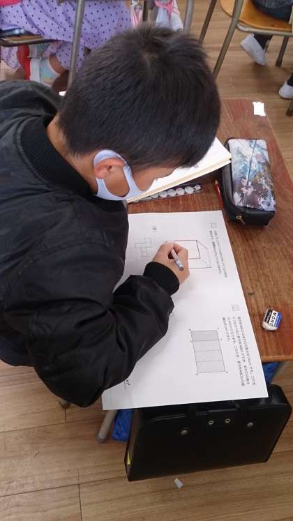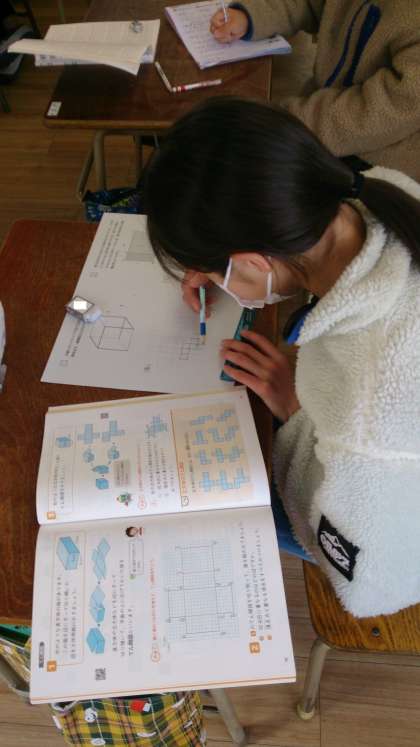 立方体の復習をしました。ドリルやプリントで練習問題をしています。