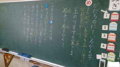 「かたちのにているかん字」について学習しました。自分で間違っている漢字を見つけて書き直していきます。