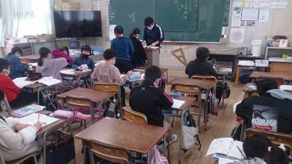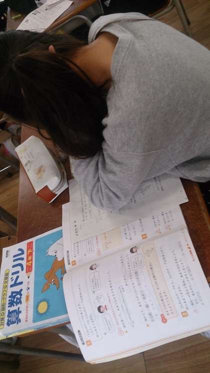 復習プリントやドリルで、「商とあまり」「数と計算」などの復習をしました。答え合わせも丁寧にしています。