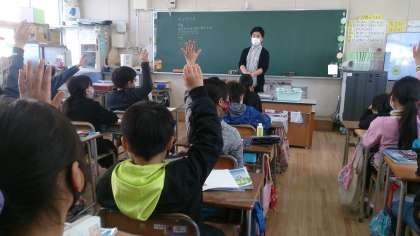 公開授業がありました。単元「水のゆくえ」の学習でした。水のゆくえに着目して、空気中から水を取り出せるかについて、実験から考察しました。下の写真は、実験の準備をしている様子です。