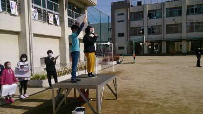 6年生を送る会がありました。1年生から5年生が、たてわり班の6年生に心をこめて、お別れの言葉を書いた色紙をプレゼントしました。6年生に関わるクイズもあり、6年生とのお別れを惜しみました。