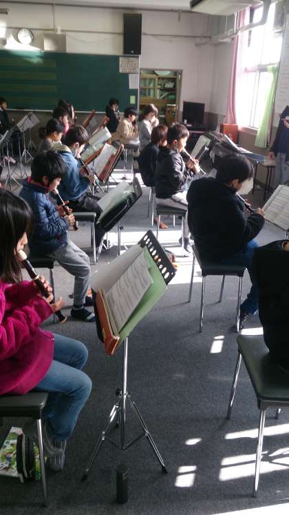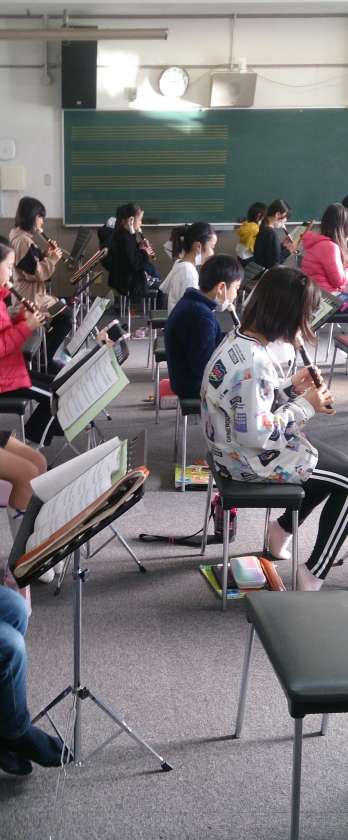 リコーダー合奏をしました。低音から高音まで息の出し方を工夫しています。美しいハーモニーで演奏しています。