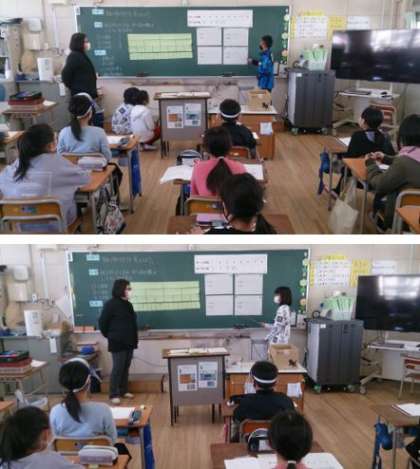 グループで考えたことを発表しました。この後、見つけた変化のきまりを活用してチャレンジ問題に取り組みました。子どもたちにとって、主体的・対話的な深い学びのあった授業でした。