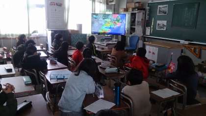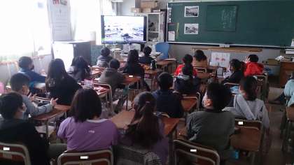 今週、3月11日で、東日本大震災が起きて10年目になります。今朝の児童朝会で、命の大切さや家族の大切さについての校長講話がありました。写真は、防災学習の動画を見ている子どもたちの様子です。