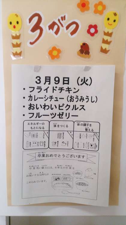 今日の給食〜卒業お祝い献立