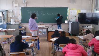 わり算の筆算などの復習に取り組みました。答え合わせも丁寧にしています。